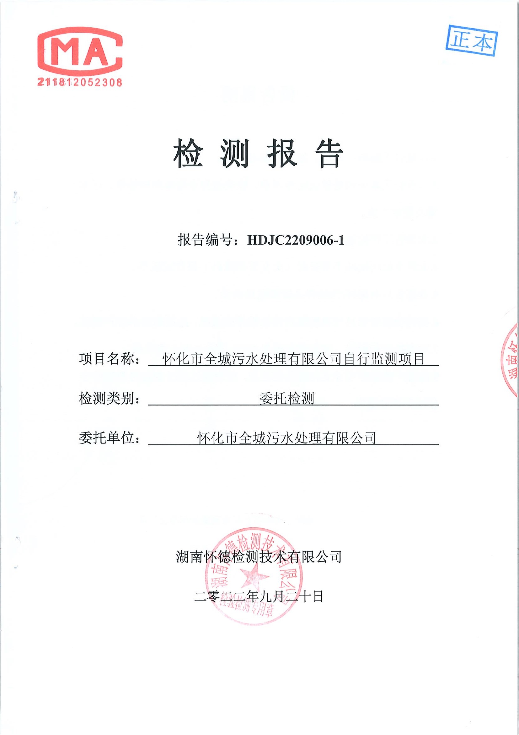 湖南怀德检测技术有限公司 2024年12月 污水出水检测报告